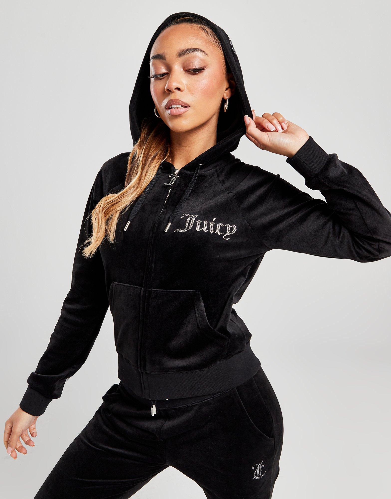 JUICY COUTURE Diamante Logo Velour Full Zip Hoodie
